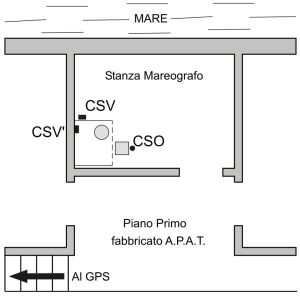 [{"simbolo_contrassegno":"B8","materializzazione":"(CSO) Sommit\u00e0 pavimento in prossimit\u00e0 dell'apertura anteriore."},{"simbolo_contrassegno":"V5","materializzazione":"(CSV) Sommit\u00e0 della staffa orizzontale di sostegno del piano su cui poggia il mareografo."},{"simbolo_contrassegno":"V5","materializzazione":"(CSV') – Sommit\u00e0 piastra metallica infissa sulla parete a destra del maregrafo."},{"simbolo_contrassegno":"B6","materializzazione":"(CSO') – Centrino in acciaio inox del tipo \"GPS D\" infisso in corrispondenza dello spigolo NORD-EST della pavimentazione del terrazzo di copertura del Mareografo. Coicidente con IGM95 270701A1."}]