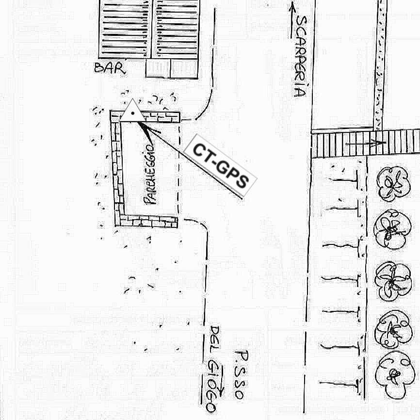 | Materializzazione | Centrino in acciaio inox infisso sulla sommità del muretto in mattoni che delimita un'area a parcheggio lungo la S.S. 503 del Passo del Giogo nel centro di Ponzalla. |