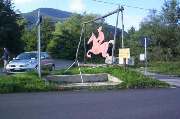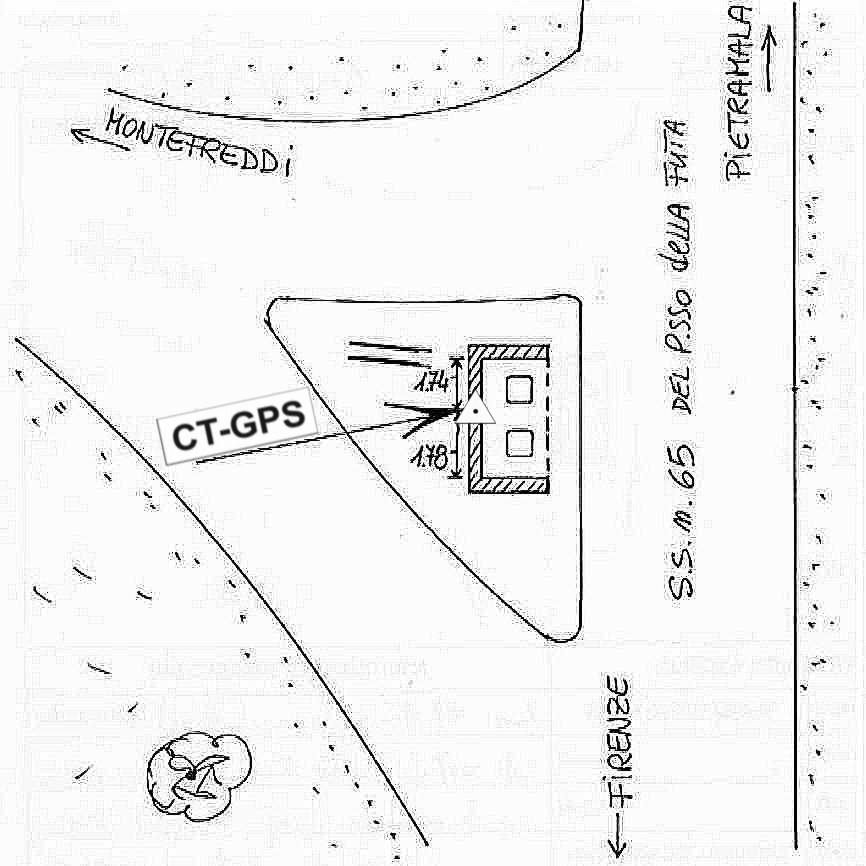 | Materializzazione | Centrino in acciaio inox infisso sulla sommità del muro di contenimento della platea dei pozzetti telefonici posti lungo la S.S. 65 del Passo della Futa in prossimità dell'incrocio per Montefreddi. |