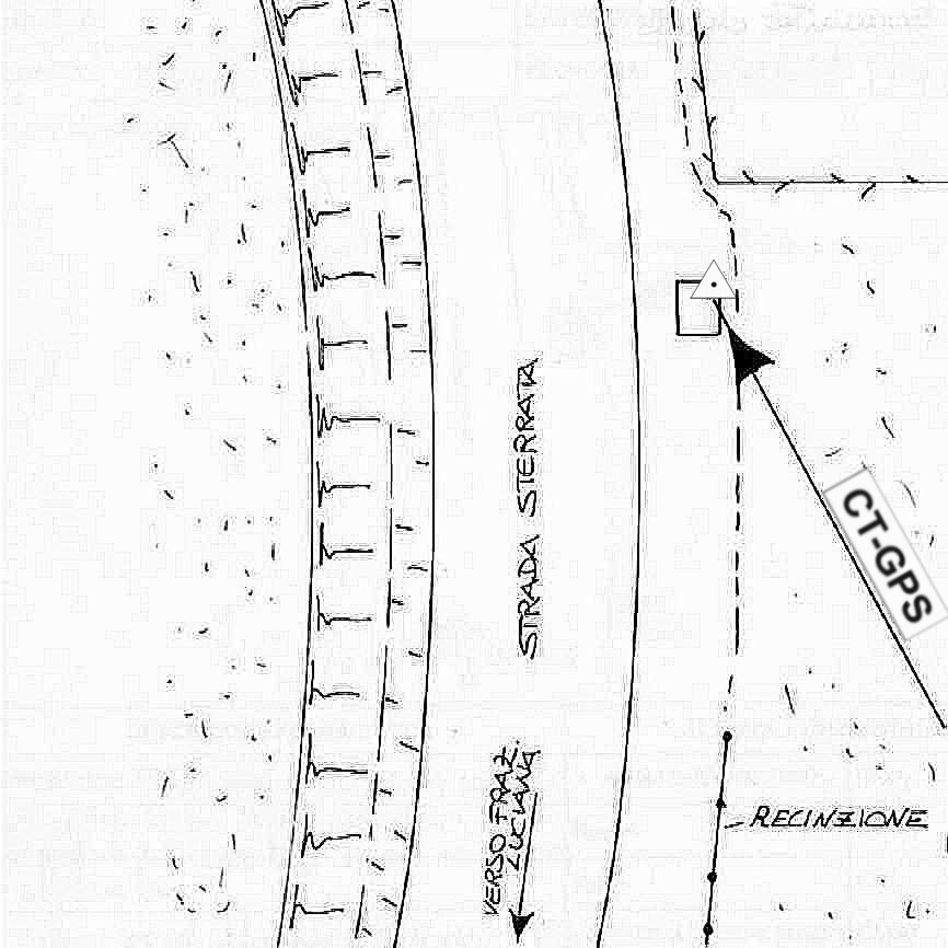 Centrino in acciaio inox murato su platea in cemento di tombino in Località Alpe di Cavarzano . Il punto è posto circa 120 metri dopo una fonte e l'ultima casa.