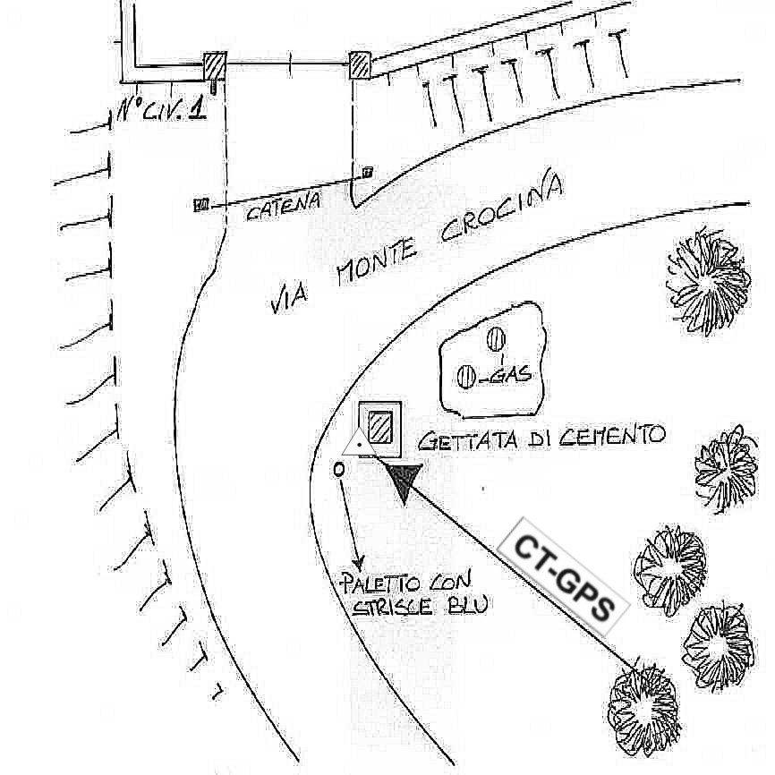 Centrino in acciaio inox murato sullo spigolo di un tombino di fronte all'ingresso del civico 1 di Via Monte Crocina.