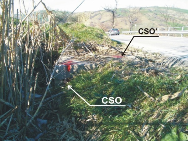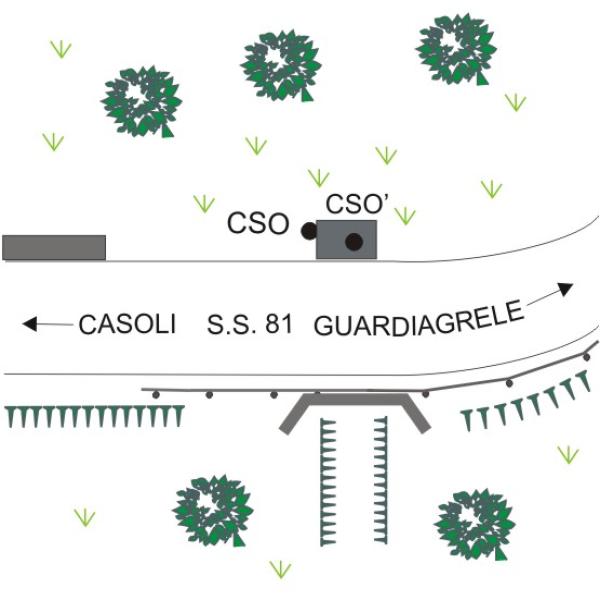 | Contrassegni | [{"simbolo_contrassegno":"B1","materializzazione":"(CSO) – Bullone infisso sulla parete laterale della caditoia in mattoni,a destra in direzione Casoli."},{"simbolo_contrassegno":"B4","materializzazione":"(CSO') – Centrino GPS con semisfera della Regione Abruzzo n\u00b0 6020 infisso sul piano del tombino,a destra in direzione Casoli."}] |