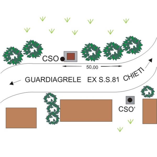 [{"simbolo_contrassegno":"B1","materializzazione":"(CSO) – Bullone infisso sulla parete del tombino, di fronte al fabbricato."},{"simbolo_contrassegno":"B6","materializzazione":"(CSO') – Centrino GPS della Regione Abruzzo n\u00b0 PC36, infisso su base del tombino, ingresso strada privata, a destra in direzione Chieti."}]