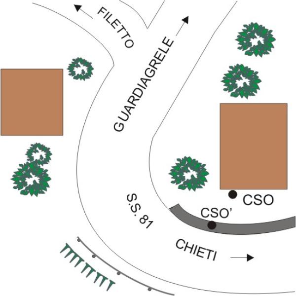 [{"simbolo_contrassegno":"B1","materializzazione":"(CSO) – Bullone infisso su muro perimetrale fabbricato, lato strada, in prossimita' della curva."},{"simbolo_contrassegno":"B4","materializzazione":"(CSO') – Centrino GPS con semisfera della Regione Abruzzo n\u00b0 2711 infisso su muro di sostegno in prossimit\u00e0 della curva, a sinistra in direzione Chieti."}]