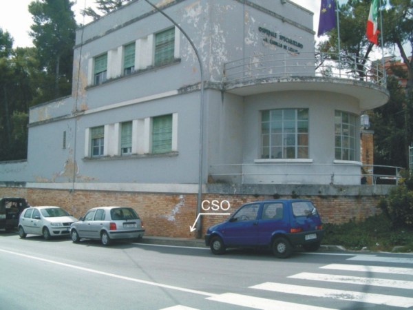 | Contrassegni | [{"simbolo_contrassegno":"B1","materializzazione":"(CSO) – Bullone infisso sul muro in mattoni della portineria del vecchio ospedale \"San Camillo de Lellis\", lato strada."}] |