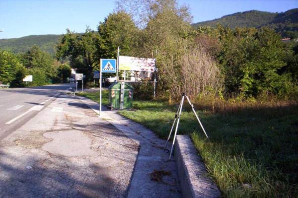Centrino GPS della Regione Toscana in acciaio Inox infisso su muretto a bordo strada lungo la S.S. 66 Pistoiese in prossimità del km 63+100 e dell'incrocio per Gavinana a Maresca.