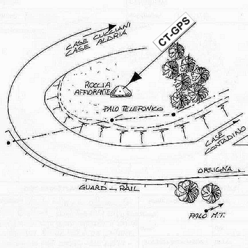 | Materializzazione | Centrino in acciaio inox murato su affioramento roccioso ubicato sul tornante della strada che si prende dopo aver superato l'abitato di Orsigna e sale a destra. |