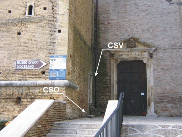 | Contrassegni | [{"simbolo_contrassegno":"B1","materializzazione":"(CSO) – Bullone infisso sul muro perimetrale in mattoni del complesso Duomo-Museo diocesano, sulla piazzetta rialzata."},{"simbolo_contrassegno":"V2","materializzazione":"(CSV) – Piastrina a barilotto infissa in corrispondenza del CSO ."}] |