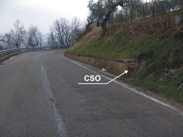 [{"simbolo_contrassegno":"B1","materializzazione":"(CSO) – Bullone infisso sulla testa del muro di sostegno in mattoni a destra in direzione Teramo."}]