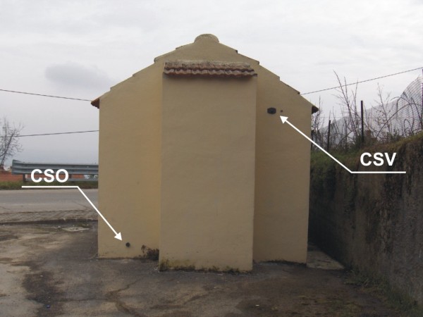 [{"simbolo_contrassegno":"B1","materializzazione":"(CSO) – Bullone infisso su parete posteriore della cappella, lato parcheggio."},{"simbolo_contrassegno":"V6","materializzazione":"(CSV) – Piastrina con cilindretto infissa su parete posterione della cappella,in prossimit\u00e0 del CSO."}]