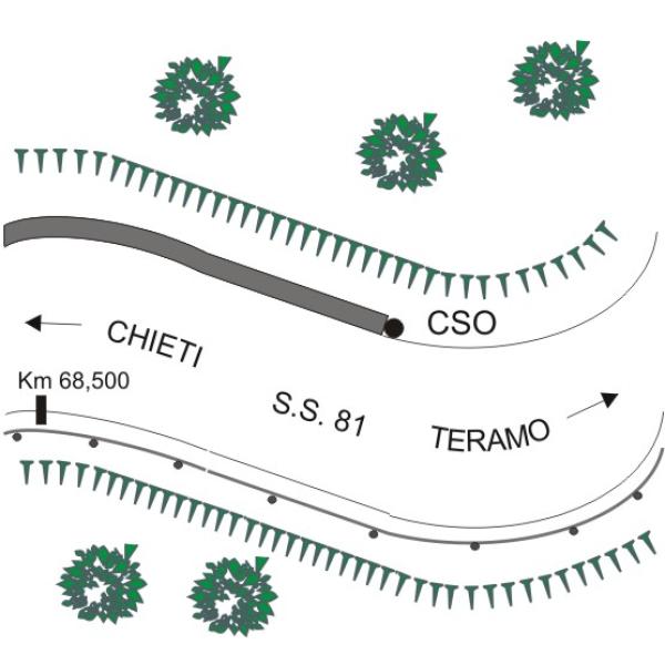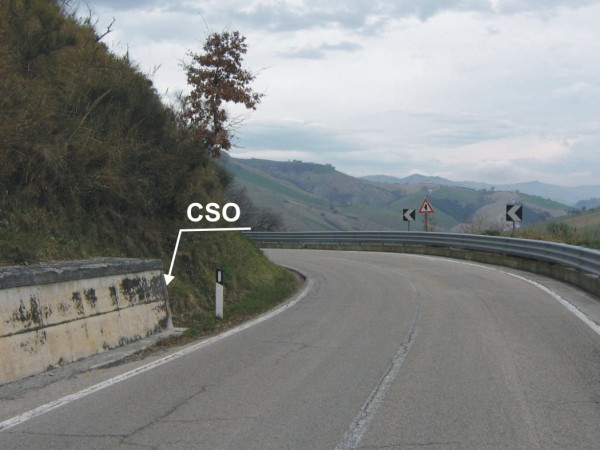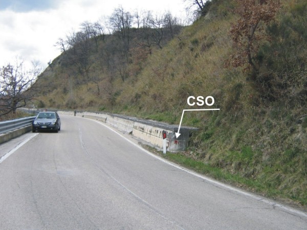 [{"simbolo_contrassegno":"B1","materializzazione":"(CSO) – Bullone infisso sulla testa del muro di sostegno a destra in direzione Teramo."}]