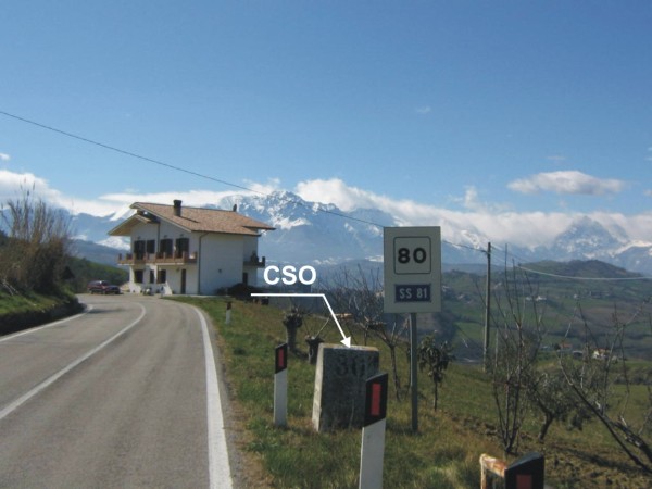 [{"simbolo_contrassegno":"B4","materializzazione":"(CSO) – Centrino GPS universale infisso sulla pietra chilometrica, a sinistra in direzione Teramo."}]