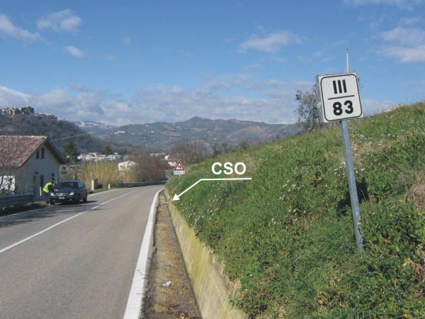 [{"simbolo_contrassegno":"B1","materializzazione":"(CSO) – Bullone infisso su muro di sostegno,in corrispondenza della rientranza della caditoia, a sinistra in direzione Teramo."}]