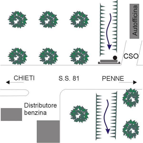 [{"simbolo_contrassegno":"B1","materializzazione":"(CSO) – Bullone infisso sul basamento del guard rail in prossimita' dell'autofficina, a sinistra in direzione Penne."}]