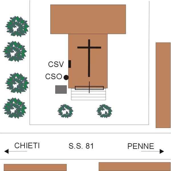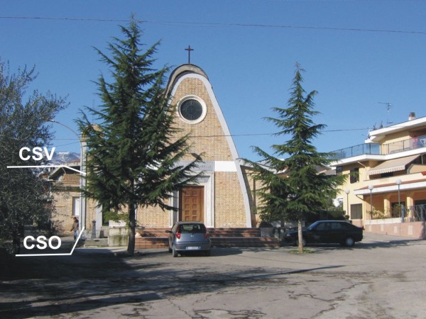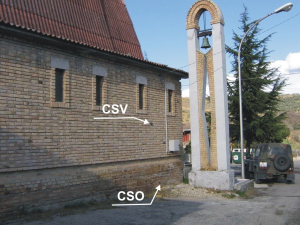 [{"simbolo_contrassegno":"B1","materializzazione":"(CSO) – Bullone infisso sulla parete laterale sinistra della chiesa, in prossimita' del campanile."},{"simbolo_contrassegno":"V6","materializzazione":"(CSV) – Piastrina con cilindretto infissa in corrispondenza de CSO."}]