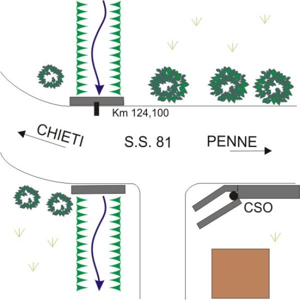 | Contrassegni | [{"simbolo_contrassegno":"B1","materializzazione":"(CSO) – Bullone infisso nella testa del muretto di sostegno,a destra in direzione Penne."}] |