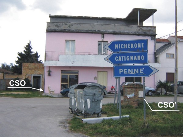 | Contrassegni | [{"simbolo_contrassegno":"B1","materializzazione":"(CSO) – Bullone infisso sullo spigolo sinistro della casa in prossimita' della campana."},{"simbolo_contrassegno":"B4","materializzazione":"(CSO') – Centrino GPS della Regione Abruzzo n\u00b0 6142 infisso sul basamento della croce posta all'incrocio stradale."}] |