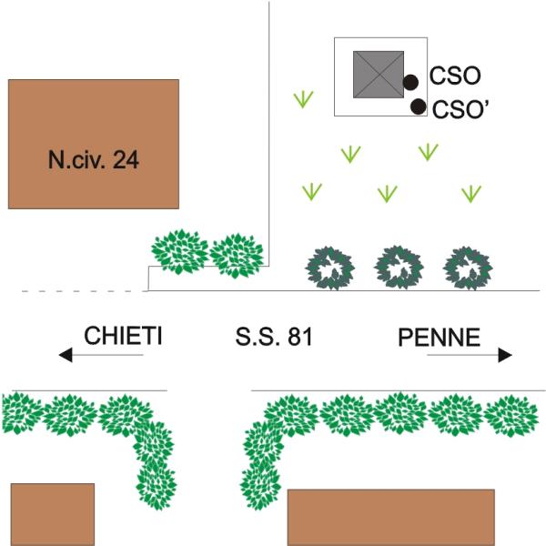 [{"simbolo_contrassegno":"B1","materializzazione":"(CSO) – Bullone infisso sul basamento di cemento della cabina ENEL a sinistra in direzione Penne."},{"simbolo_contrassegno":"B6","materializzazione":"(CSO') – Centrino GPS della Regione Abruzzo n\u00b0 P515 infisso sul piano del basamento in cemento della cabina ENEL, a sinistra in direzione Penne"}]