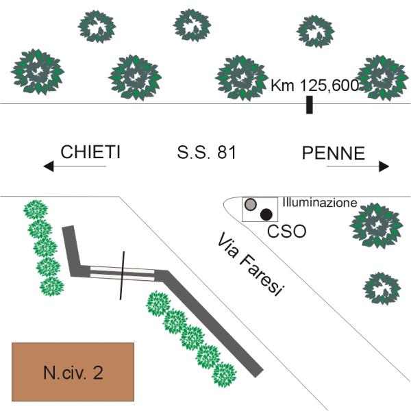 | Contrassegni | [{"simbolo_contrassegno":"B4","materializzazione":"(CSO) – Centrino GPS con semisfera della Regione Abruzzo n\u00b0 1455 infisso sul basamento del palo dell'illuminazione a destra in direzione Penne."}] |