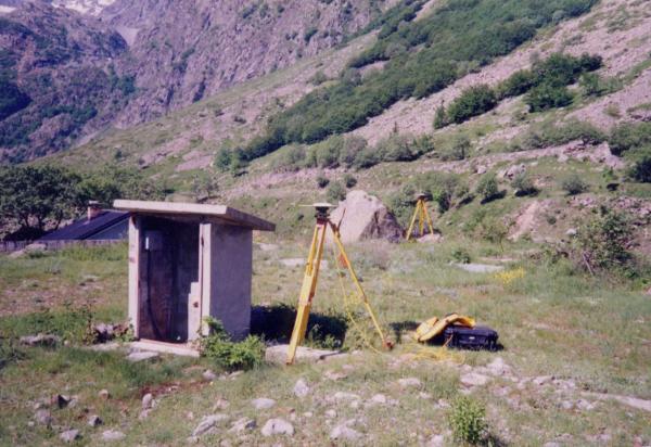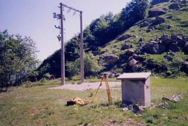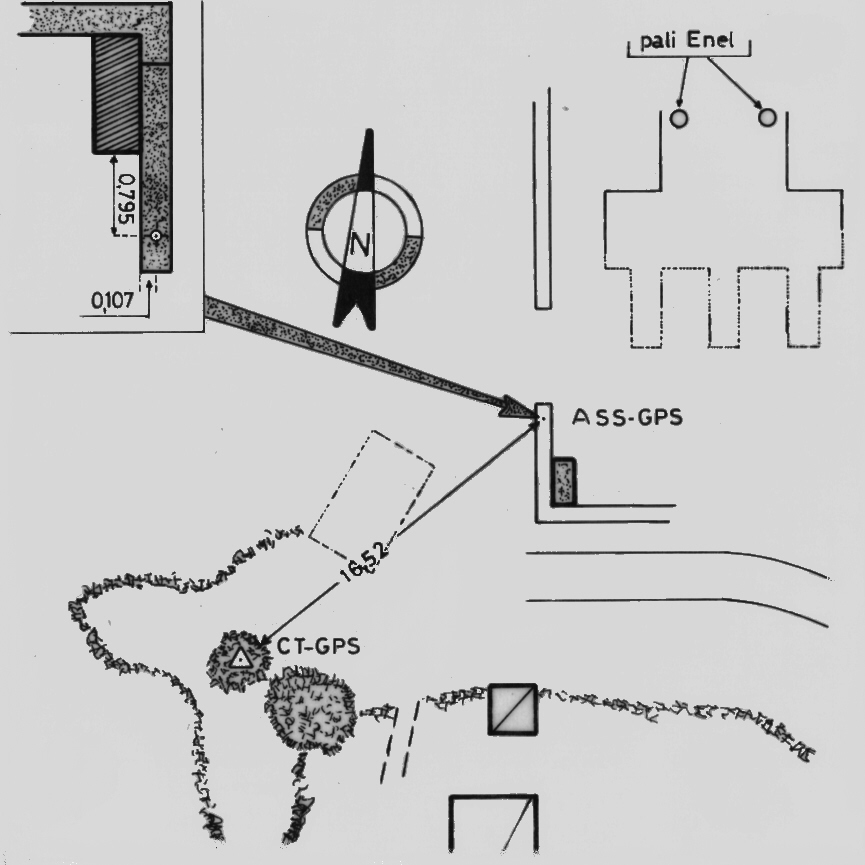 Centrino del tipo "GPS D" infisso sul cordolo in cemento esistente sul lato nord della strada sterrata in prossimità di un casottino in muratura.