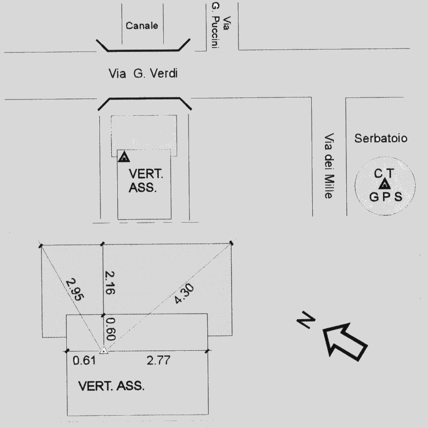 | materializzazione | Centrino del tipo "GPS D" fissato alla sommità della soletta in cemento a copertura del canale. |