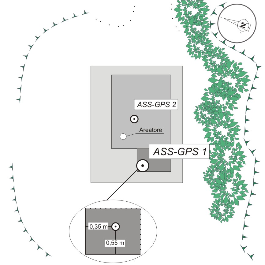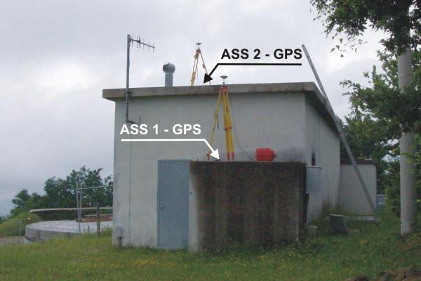 Centrino del tipo "GPS D" infisso sulla piccola cabina in cemento adiacente il serbatoio idrico "AGAC".
