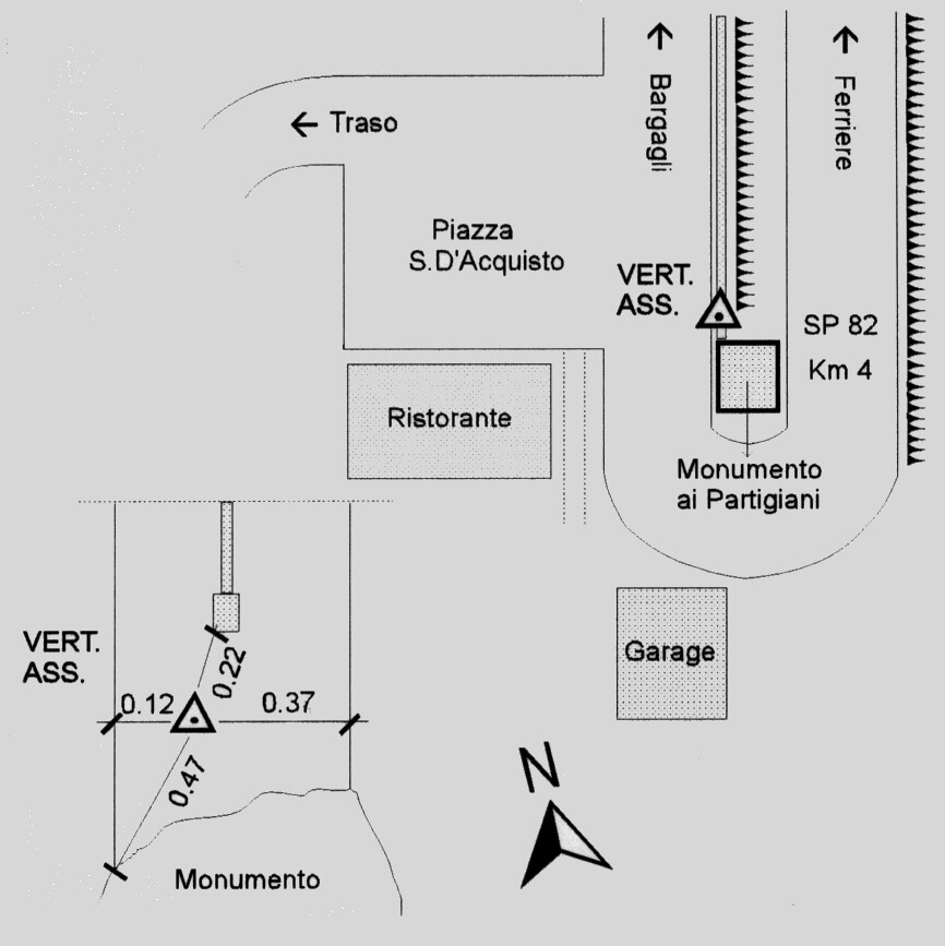 Centrino del tipo "GPS D" infisso alla sommità del muro di sostegno della strada.