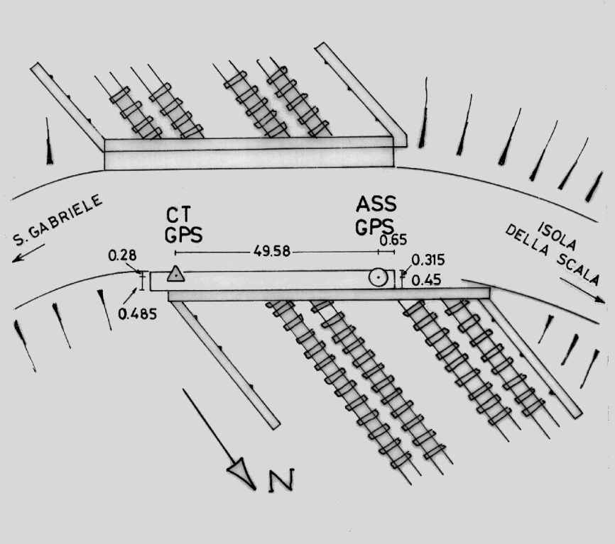 | materializzazione | Centrino di tipo "GPS D" fissato sul marciapiede in cemento armato del cavalcavia sulla ferrovia (lato Isola della Scala). |