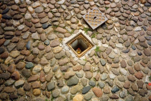 | materializzazione | Centrino metallico del Magistrato delle Acque cementato all'interno di un pozzetto in ghisa in Piazza Sordello di fronte al Palazzo Ducale. |