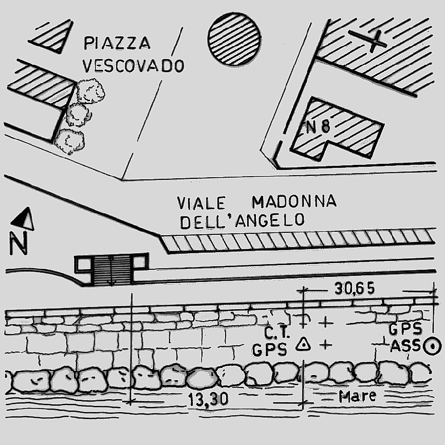 | materializzazione | Centrino di tipo "GPS D" fissato sul lastricato in pietra costituente barriera rompiflutto a protezione della costa di Caorle e prossimo al CT GPS. |