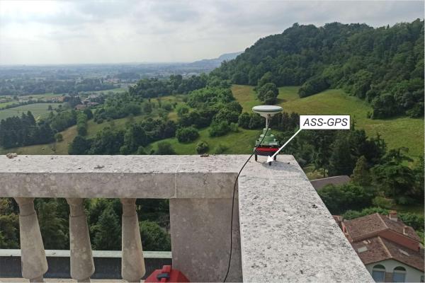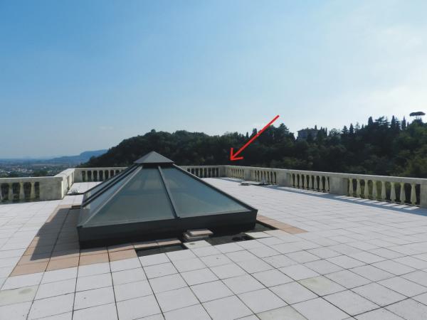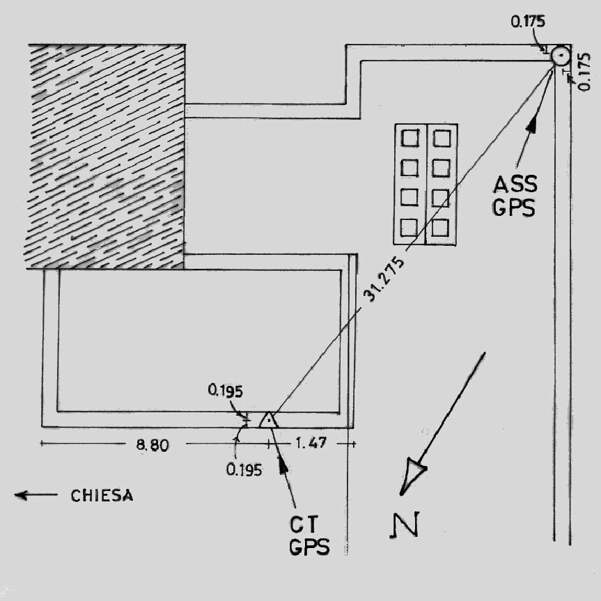 Centrino di tipo "GPS D" infisso sullo spigolo sud del cordonato della balaustra del grande terrazzo a destra della basilica.