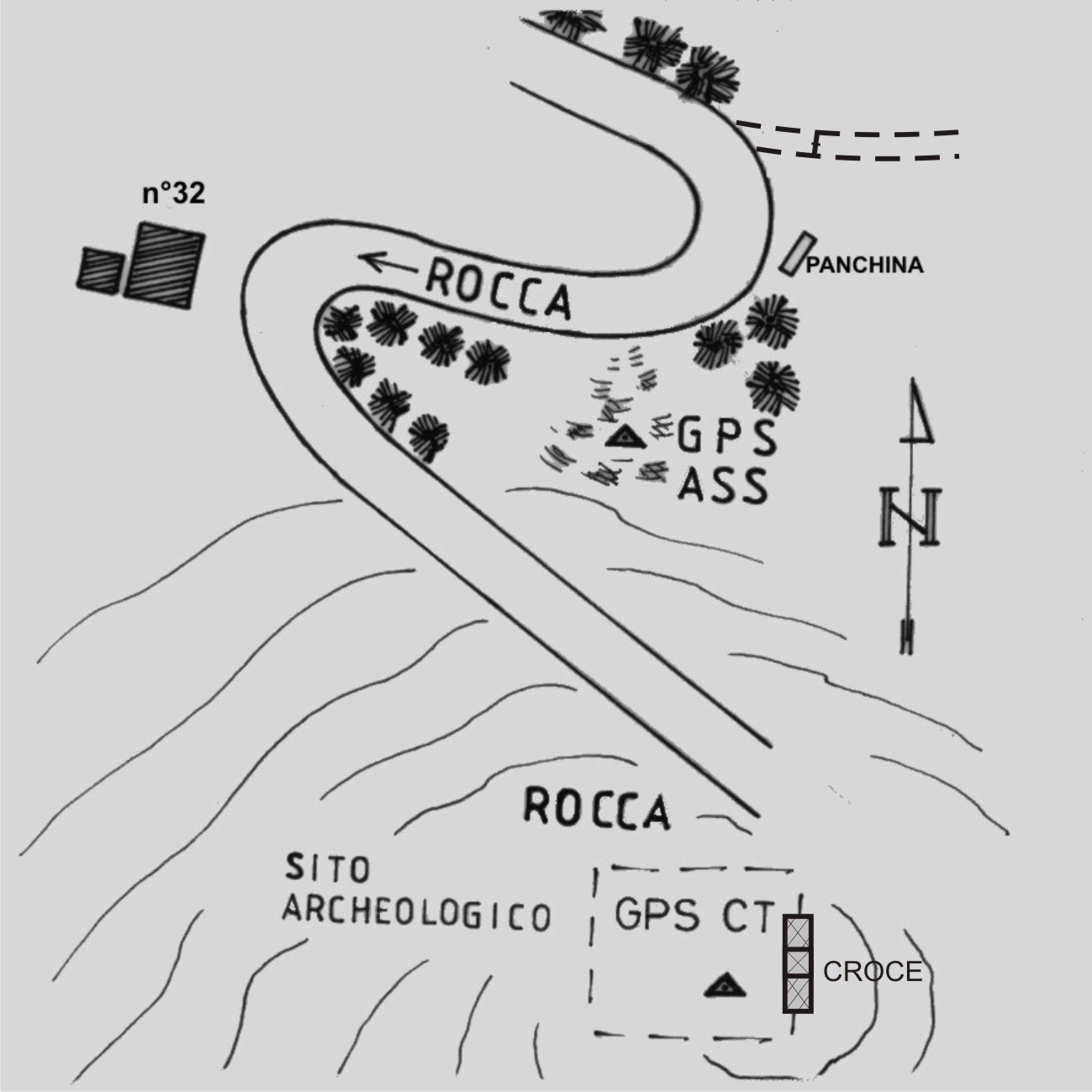 | materializzazione | Centrino in acciaio inox del tipo "GPS D" infisso su roccia affiorante. |