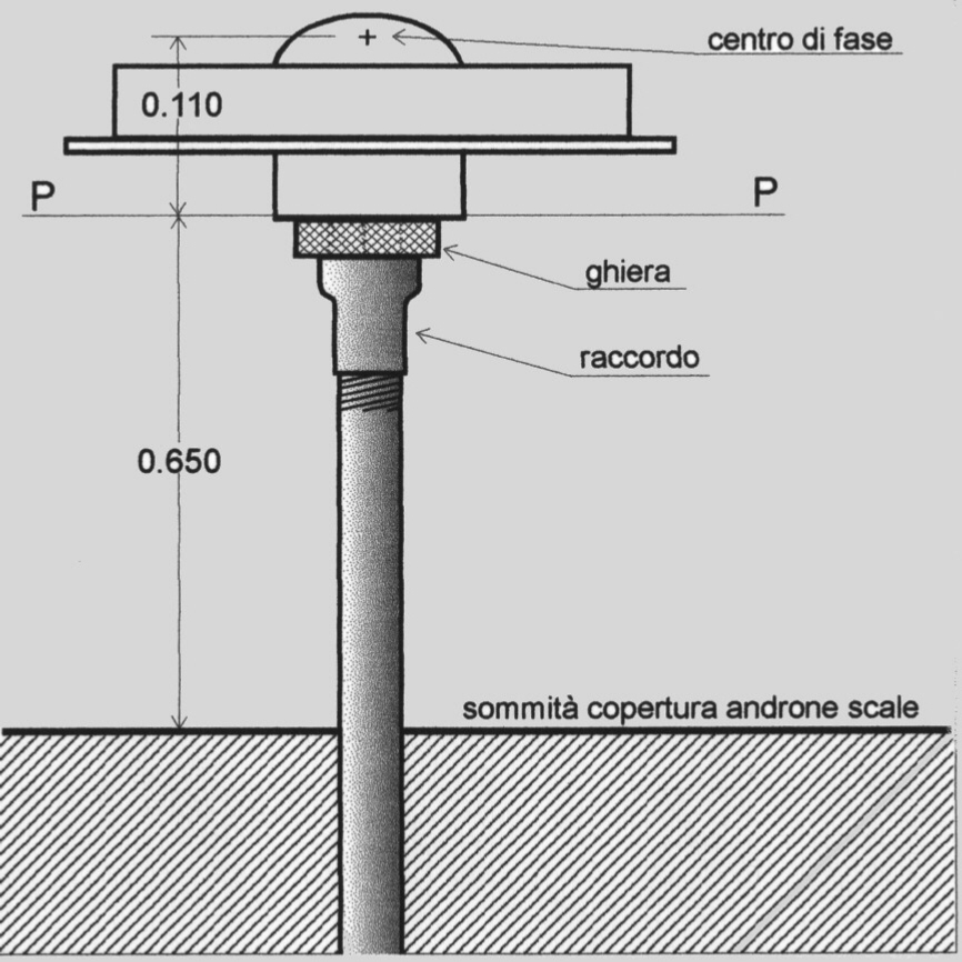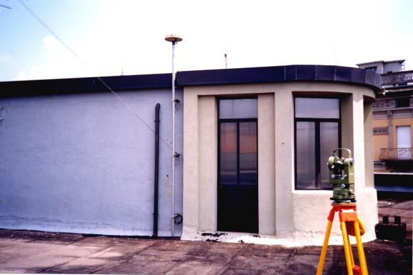 | materializzazione | Tubo metallico fissato con staffe alla parete del casotto sovrastante l'androne delle scale dell'edificio sede degli uffici comunali, ubicato in Largo Don Minzoni n.civ.8, adiacente ai Mercati generali. Il tubo termina in alto con un raccordo ed una ghiera metallica alla quale è fissata stabilmente un antenna GPS. |