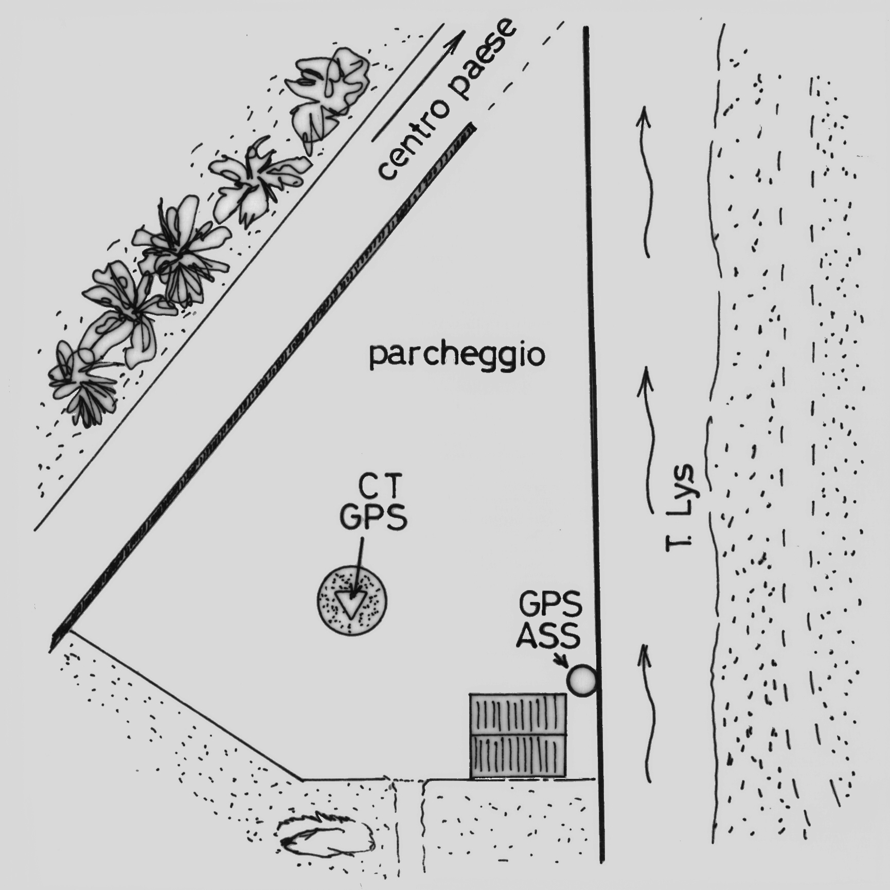 | materializzazione | Centrino del tipo "GPS D" infisso nella piattaforma in cemento armato adiacente un casotto nel parcheggio dove è ubicato il CT-GPS. |