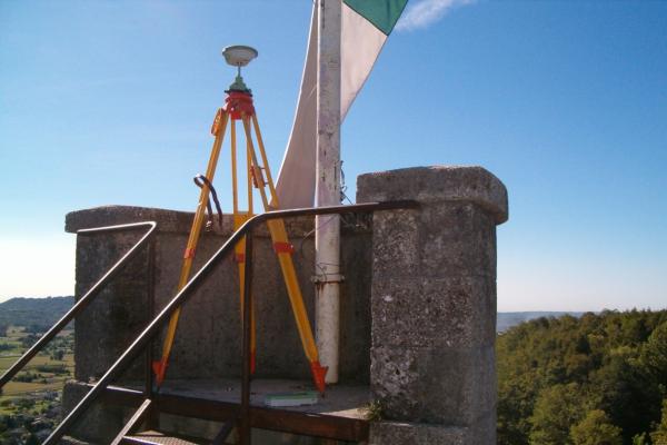 Centrino di tipo "GPS D" infisso sulla soletta in cemento armato del terrazzino dell'asta della bandiera.