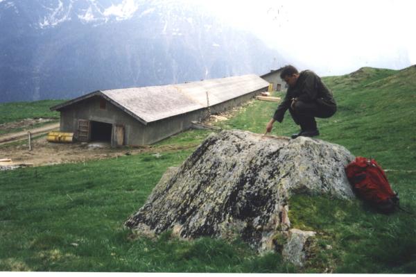Centrino di tipo "GPS D" fissato su roccia affiorante a nord della strada.