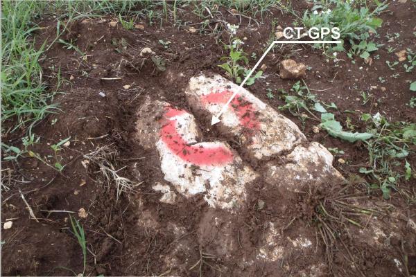 | materializzazione | Gambo del centrino di tipo "GPS C" infisso su roccia affiorante all'interno di un pascolo, nei pressi di un tabernacolo e circa 50 metri a ovest di una centralina del metanodotto. |