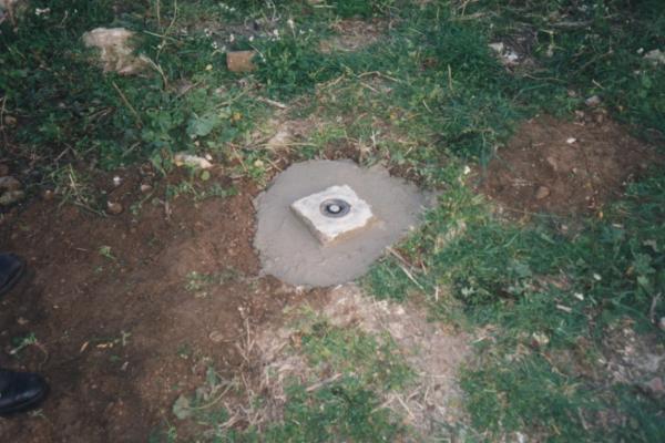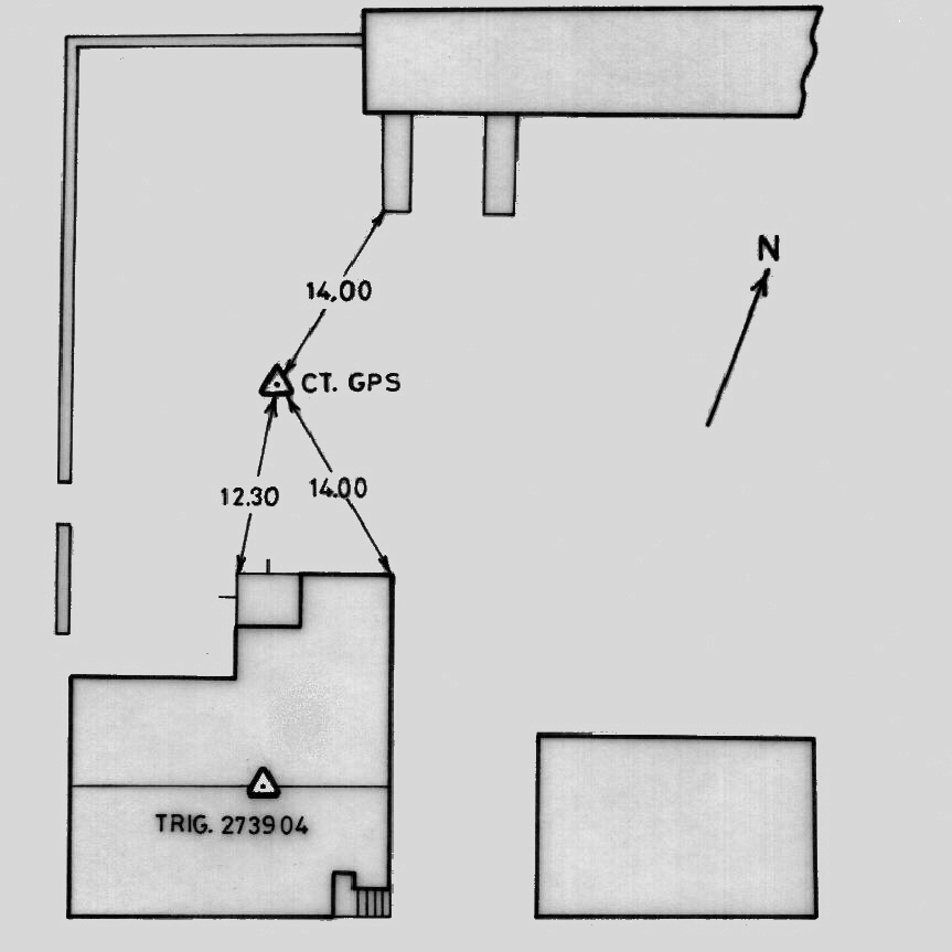 | materializzazione | Centrino di tipo "GPS A" fissato su un centrino di superficie in blocchetto di calcestruzzo cementato nel cortile erboso a nord dell'edificio principale del complesso Casa Malerba in località Ogliastro. |