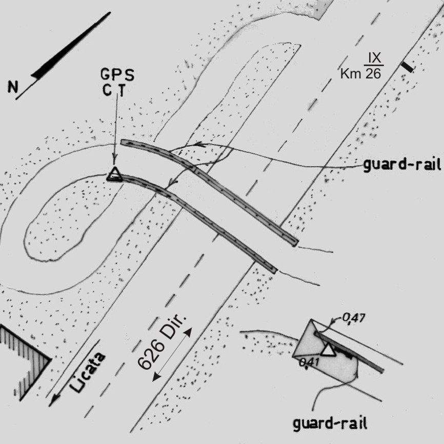 | materializzazione | Centrino di tipo "GPS C" fissato alla sommità del muro a retta del cavalcavia n.° 13 in località Isola Persa. |