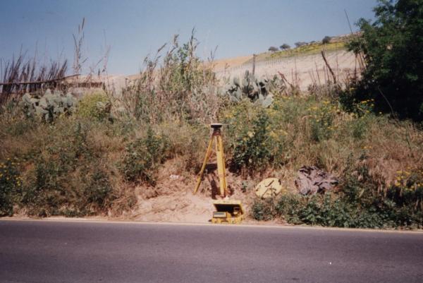| materializzazione | Centrino di tipo "GPS C" fissato sul pozzetto del caposaldo di livellazione sul bordo stradale a ridosso del muretto di sostegno. |