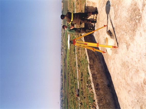 Centrino del tipo "GPS A" fissato su preesistente centrino metallico dell'Istituto Idrografico della Marina cementato alla sommità della torre in prossimità dello spigolo sud – ovest.