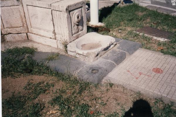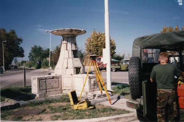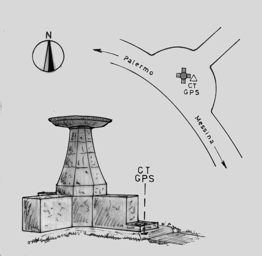 | materializzazione | Centrino del tipo "GPS C" fissato sul basamento in pietra della fontana al centro della piazza. |