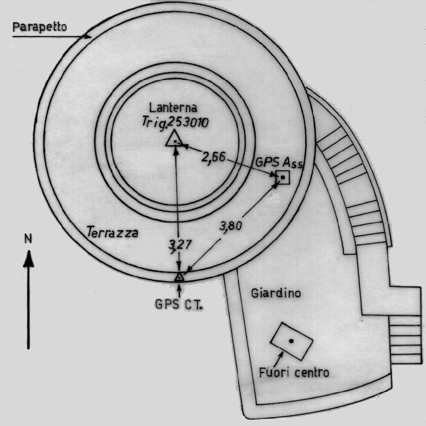 | materializzazione | Centrino di tipo "GPS C" fissato sul parapetto della terrazza che cinge la lanterna del faro, a sud della lanterna. |