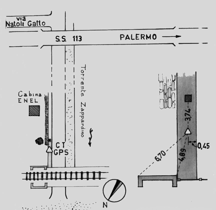 Centrino di tipo "GPS C" infisso alla sommità di un muro di sostegno in cemento.