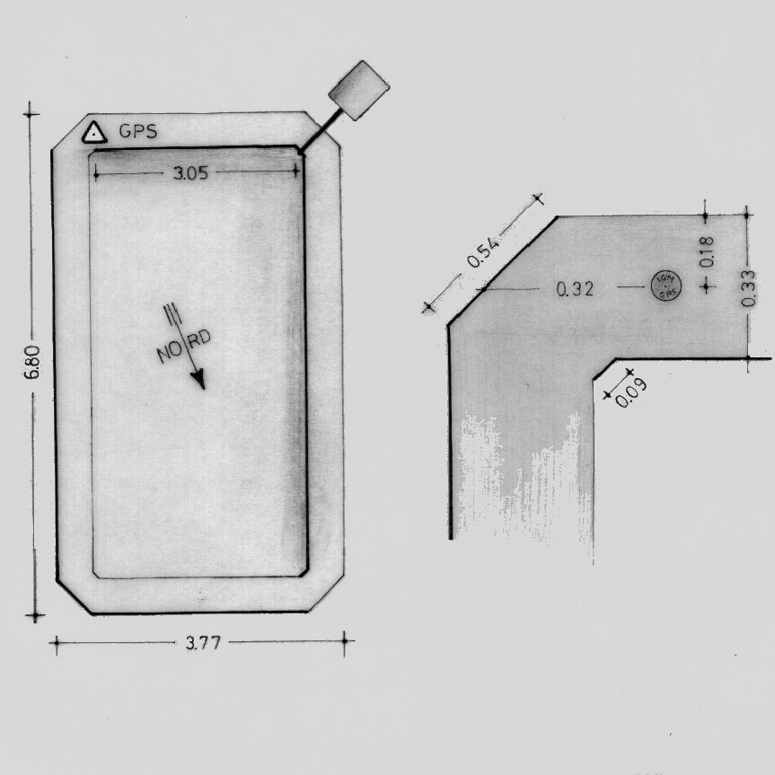 Centrino in acciaio inox del tipo "GPS C" fissato su di una lastra di marmo a coronamento del parapetto del terrazzo di copertura della garitta della Guardia di Finanza.