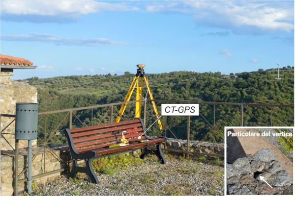 | materializzazione | Centrino di tipo "GPS C" fissato sul cordolo sopra al serbatoio dell'acquedotto comunale, situato dentro all'antico castello normanno, sovrastante l'abitato di Squillace. |