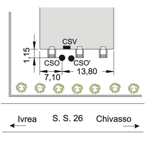 [{"simbolo_contrassegno":"P3","materializzazione":"(CSO) – Pozzetto posto sul marciapiede della facciata, fra la porta centrale e quella di sinistra, protetto da pozzetto quadrato in ghisa.("},{"simbolo_contrassegno":"V1","materializzazione":"(CSV) – Mensola infissa sulla facciata, 1 m a destra del CSO."},{"simbolo_contrassegno":"B2","materializzazione":"(CSO') – Chiodo anonimo infisso nel cemento a destra del CSO e a sinistra delle scalette centrali."}]