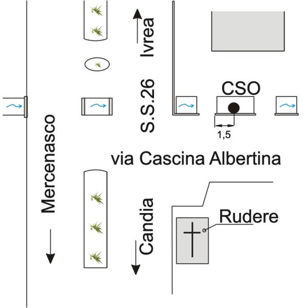 | Contrassegni | [{"simbolo_contrassegno":"B1","materializzazione":"(CSO) – Bullone infisso nella parete del canale a lato di via Cascina Albertina, a 1,5 m circa dalla spalla destra del primo ponticello sulla Roggia del Bosco."}] |