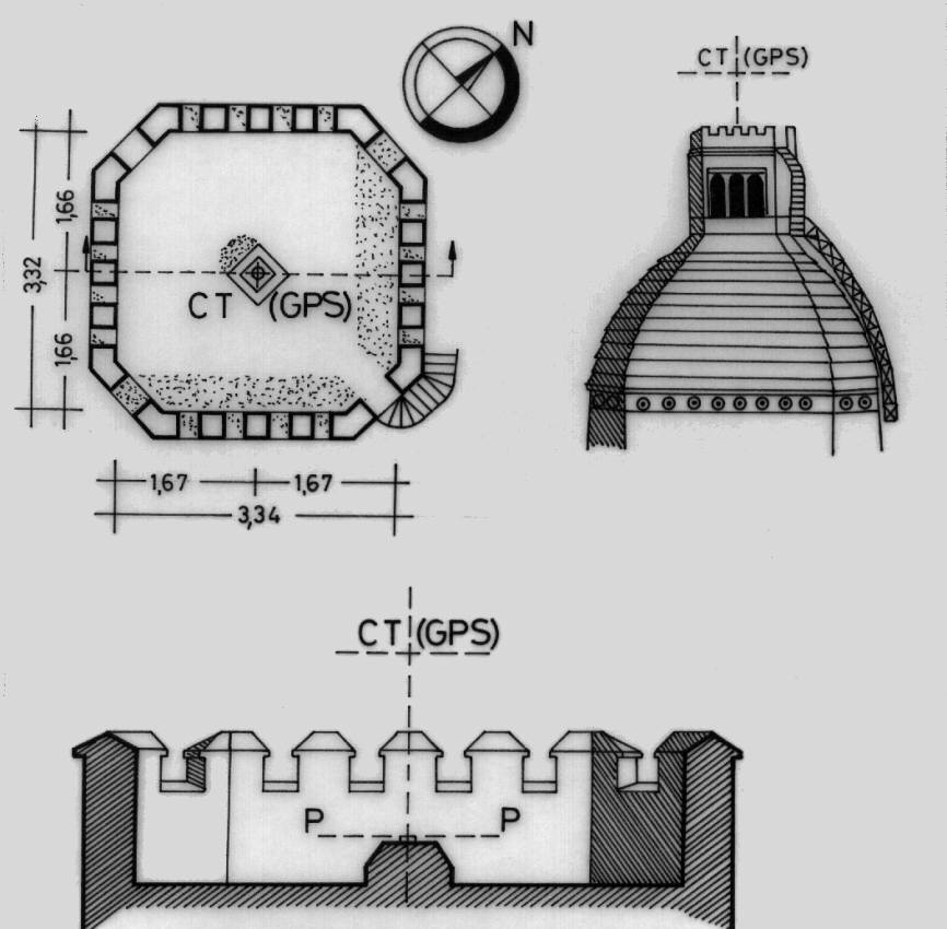 | materializzazione | Centrino di tipo "GPS A" fissato alla sommità del blocchetto in calcestruzzo fuoriuscente dalla terrazza di copertura della cupola della Chiesa di S. Rocco e S. Francesco di Paola e coincidente con l'asse geometrico della terrazza stessa. |