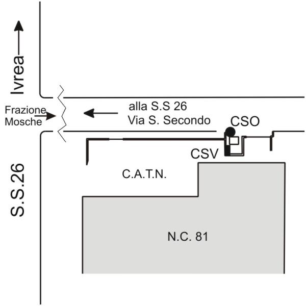 [{"simbolo_contrassegno":"B1","materializzazione":"(CSO) – Bullone infisso nel cordolo adiacente il traliccio ENEL, a circa 2 m dall'estremo lato strada."},{"simbolo_contrassegno":"V1","materializzazione":"(CSV) – Mensola infissa all'interno della recinzione, sullo stesso muro del CSO, presso lo spigolo."}]